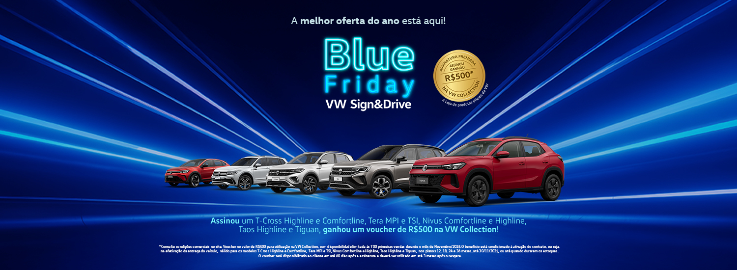 O VW Sign&Drive é o seu serviço de assinatura de carro 0km da Volkswagen. Você seleciona o modelo de veículo desejado, o período da contratação (12, 18, 24 ou 36 meses) e a quilometragem mensal (500km, 1.000km ou 1.500km). O veículo escolhido será entregue com documentação, taxas pagas e os serviços agregados à locação – como documentação, manutenção preventiva, IPVA e proteção inclusos. O serviço está disponível a nível nacional.